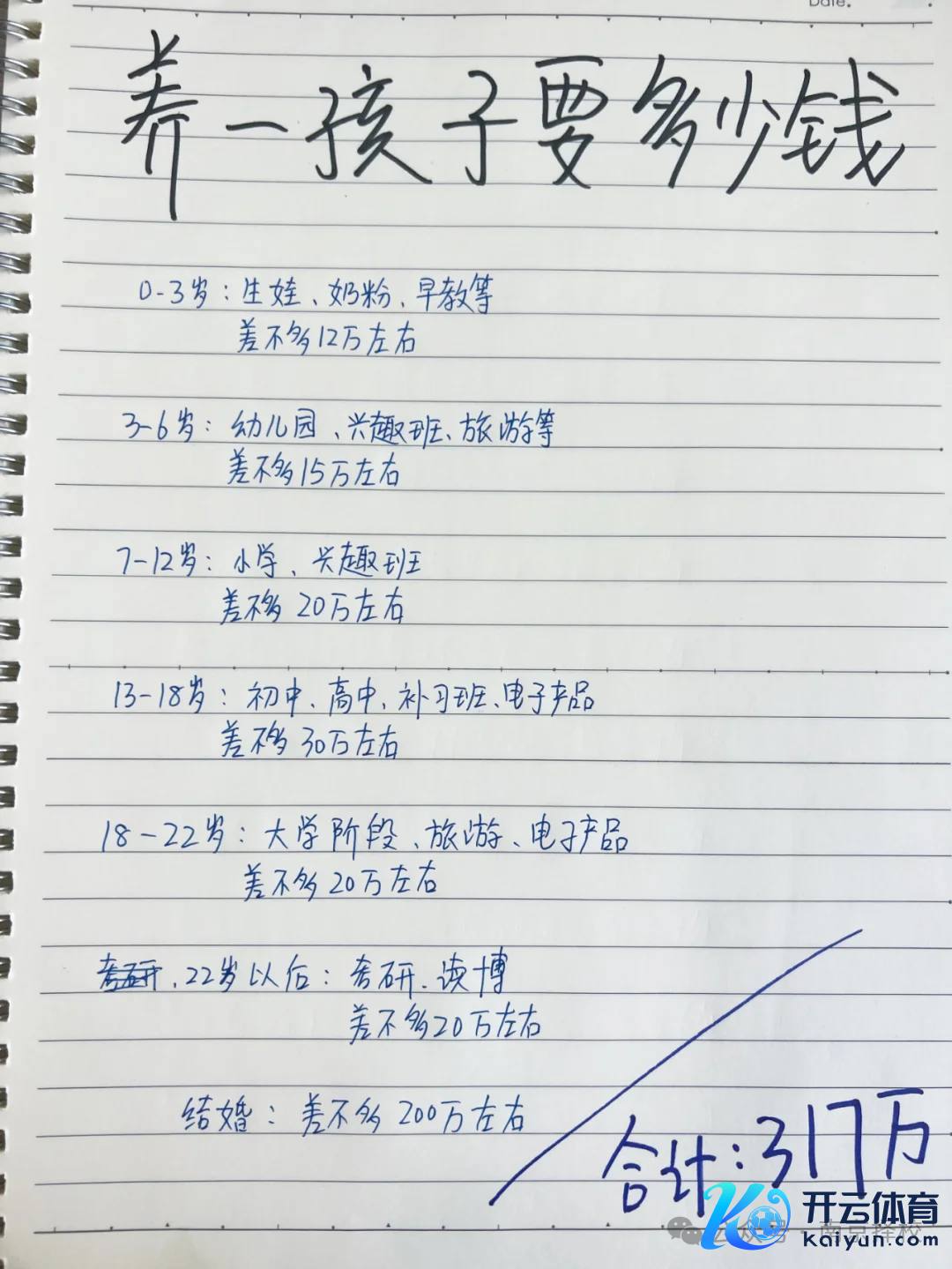 有网友在酬酢媒体发文,养一个孩子要些许钱?谜底是317万!
