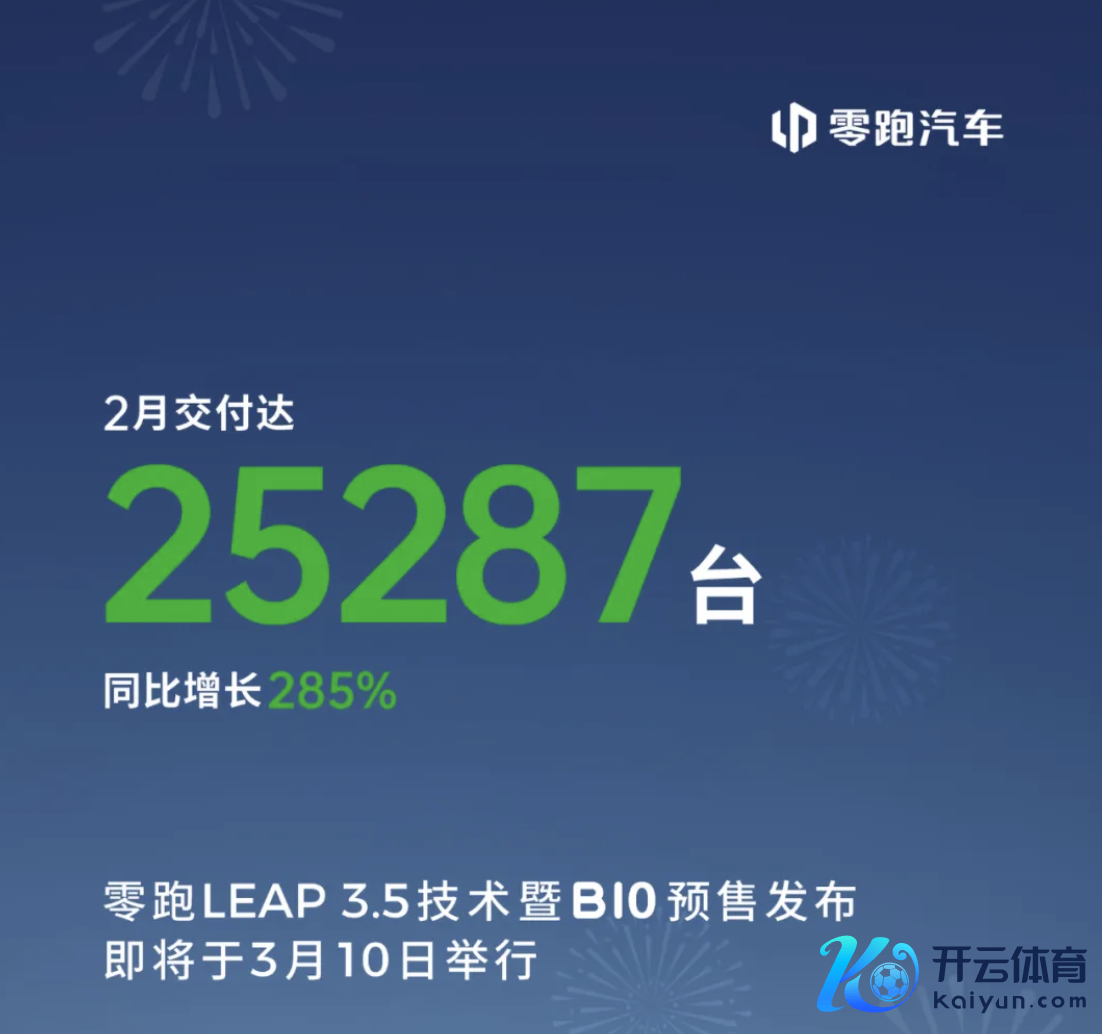 零跑汽车:2月单月委派量25287台零跑汽车:2月单月委派量25287台