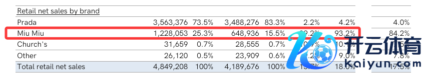 3月4日晚,意大利亏欠公司PRADA(普拉达)集团公布了2024财年全年功绩。财报清楚,按固定汇率经营开云(中国)Kaiyun·官方网站 - 登录入口,Prada集团2024财年营收54.32亿欧元,同比增长17%;按零卖销售额则同比增长18.0%。其中,旗下最主要的两大品牌Prada、Miu Miu的零卖销售额分歧为:同比增长4.2%至35.63亿欧元;同比增长93.2%至12.28亿欧元。
